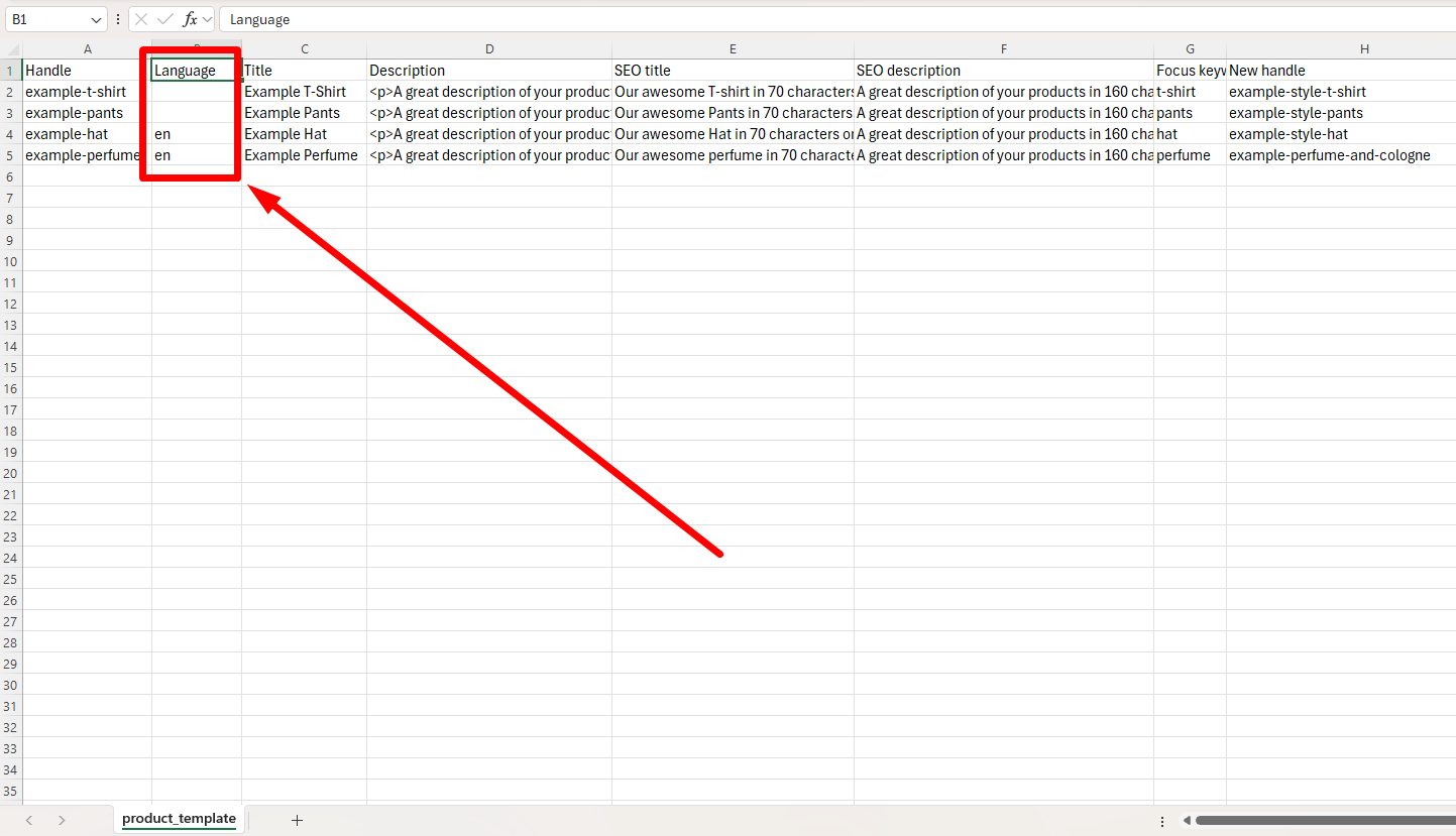 NOTE: Fixing Title in Bulk edit in CSV will overwrite the existing value in Shopify admin config.Column D: Description