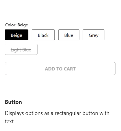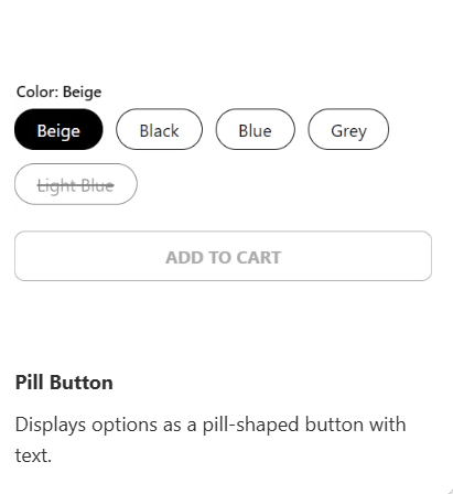 This feature allows you to flexibly create customized Color Swatch templates to match your business goals and product page and product card design. You can customize all types of Color Swatch. In this guide, we’ll explore the second 3 versatile swatch types - Customize Button, Pill Button, Dropdown - to help you craft a cohesive, flexibly functional look that helps your customers shop effortlessly.