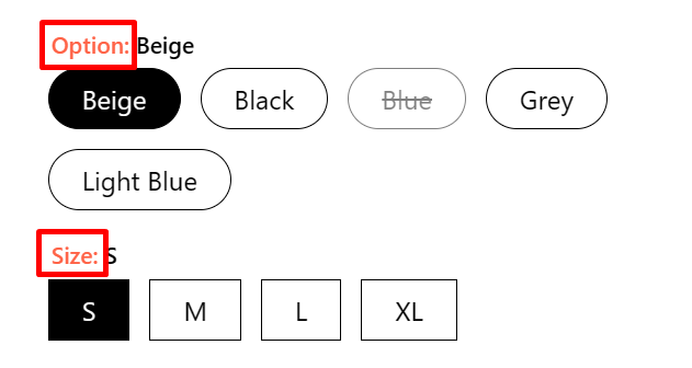 Add the spacing between the Label Option and the Option items (e.g. increase spacing between the Label Option - Size and its Option items - XS, S, M, L).