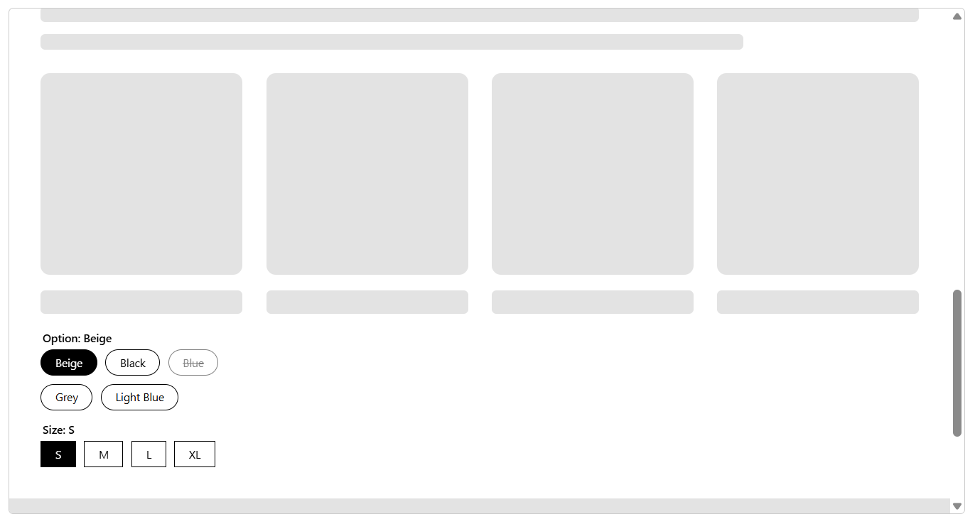 Fade + Strikethrough: Applying both the ‘Fade’ and the ‘Strikethrough’ effect for a clearer suggestion of unavailable stocks.