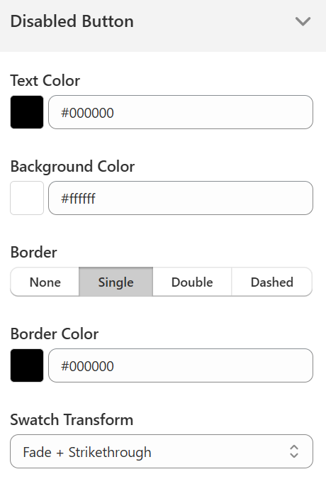 Strikethrough: Applying this will show a strikethrough line on the disabled swatch.