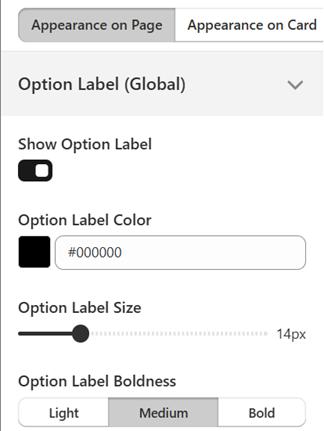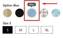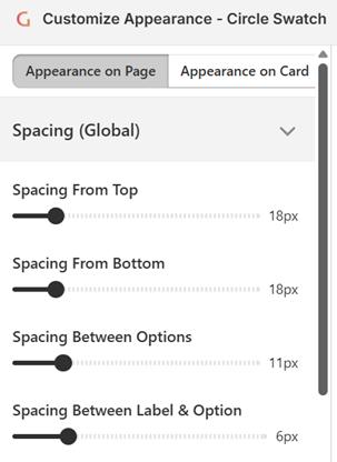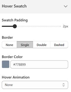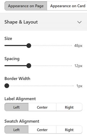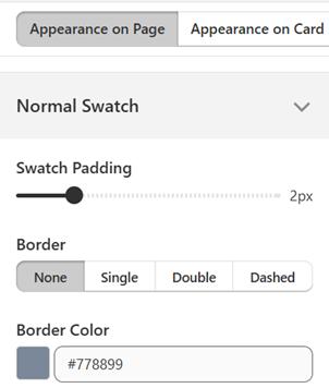 color swatch. Toggle this OFF to hide the option label on the color swatch