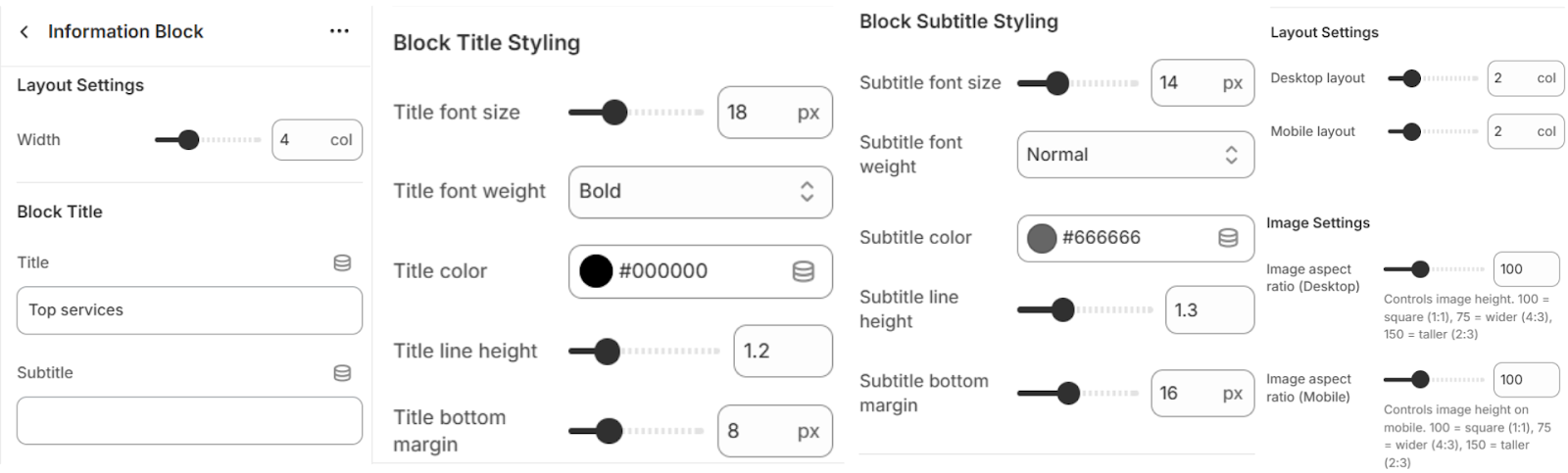 - Image Settings (Desktop / Mobile) aspect ratio: Set the image shape using a ratio value.