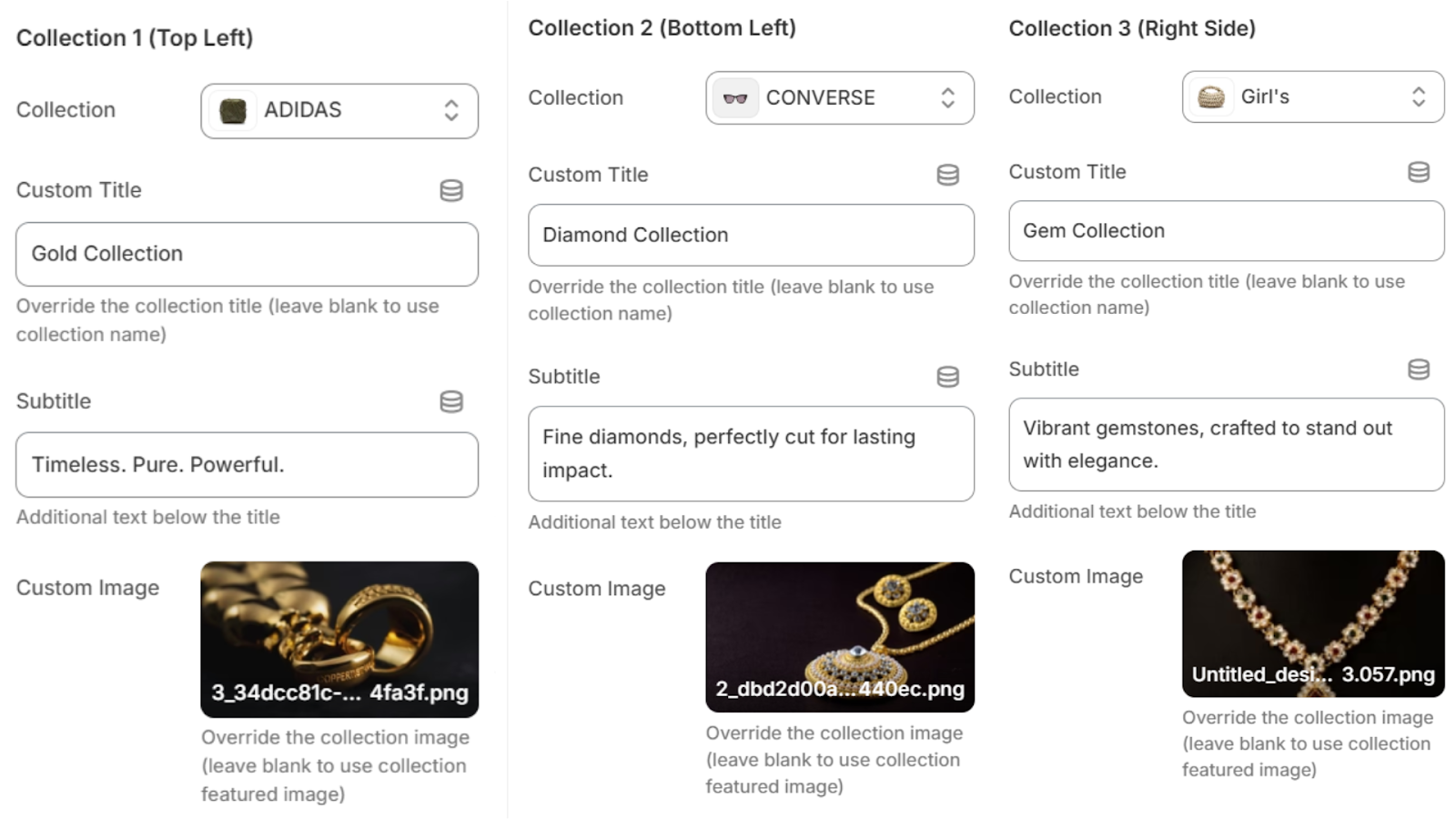 - Image Settings (Desktop / Mobile layout): Choose how many images appear per row on each device.