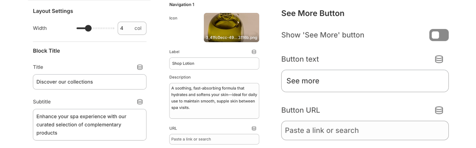 - Multi-Functional Block System: Mix and match blocks for products, blog posts, social media, store info, image galleries, and more – each designed to serve a different merchandising purpose