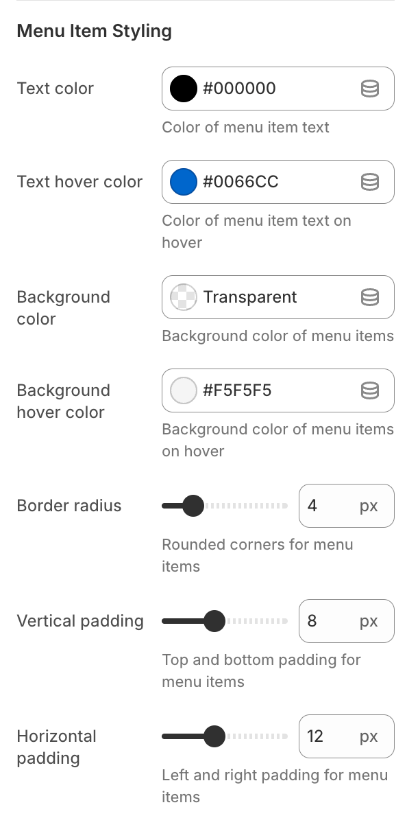 - Customize the appearance of dropdown menus when hovering over top-level items with submenus.