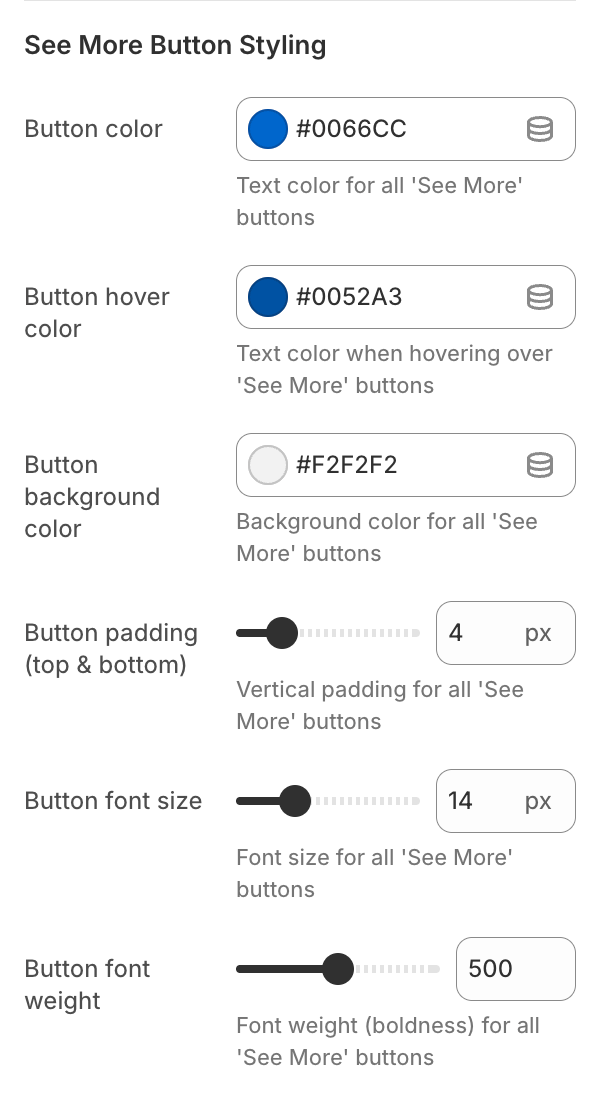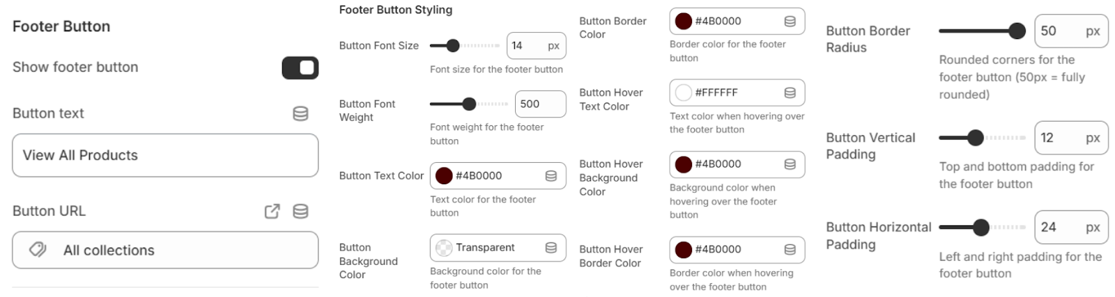 - Button font size & font weight: Adjust the size and boldness of the button text.