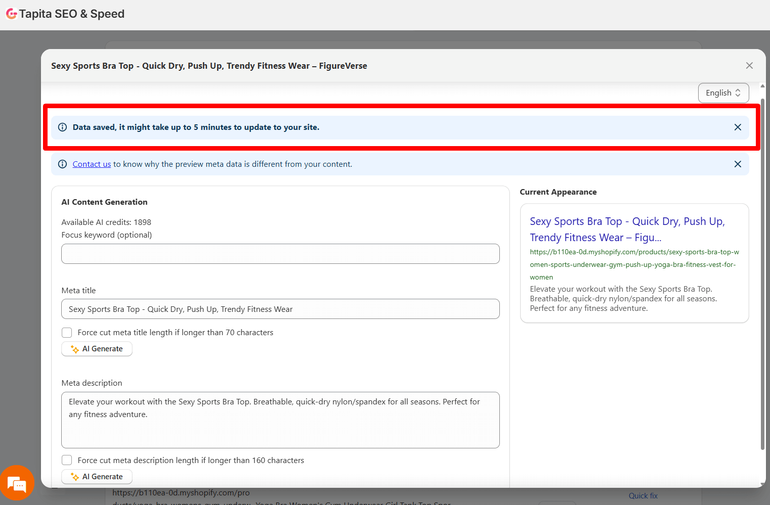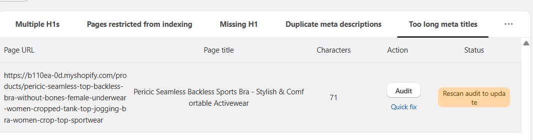 After scanning, you will see your SEO score and the SEO errors Tapita detected in your store.